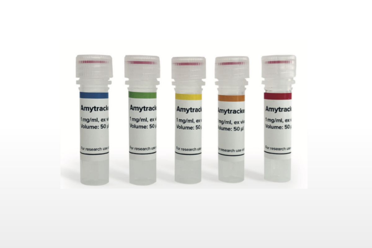 Amytracker allow high quality visualisation of protein aggregates and detect prefibrillar- and fibrillar states of amyoids originating from a variety of amyloidogenic proteins or peptides. Amytracker can be used in tissue sections, live cells and can be applied in vivo.