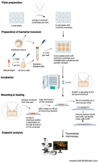 - Pipett 6 ml of EbbaBiolight supplemented bacterial culture into each well fitted with glass coverslips.