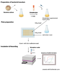 - Use 100-200 µl liquid culture supplemented with EbbaBiolight per well.
